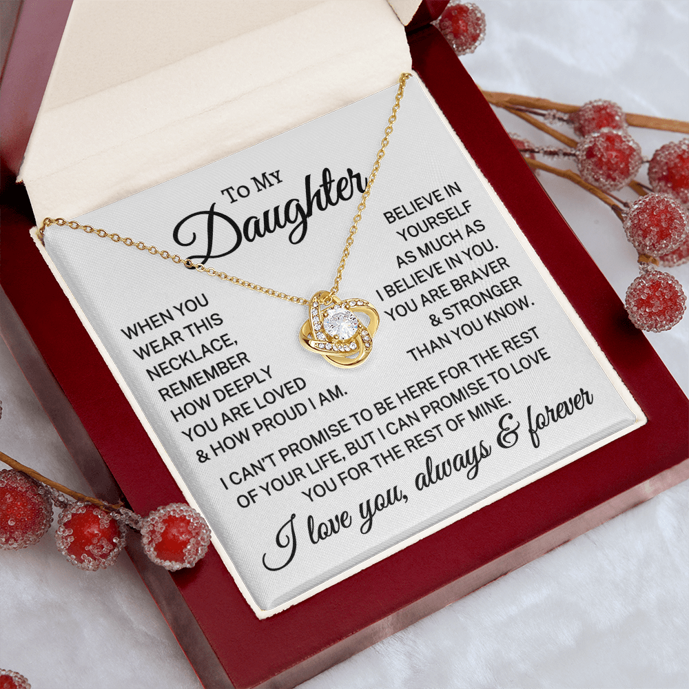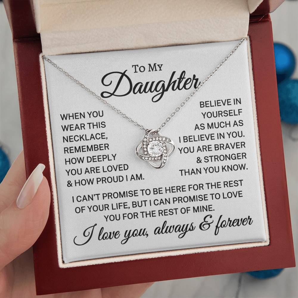 Show your daughter how deeply she is cherished with the "You Are Loved" Love Knot Necklace, a perfect gift for daughters on birthdays, graduations, or special milestones.