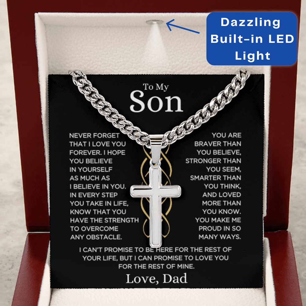 Gift for Son From Dad "Make Me Proud" | Cuban Chain with Artisan Cross